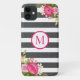 Elegant Floral Black White Stripe Monogram Case-Mate iPhone Case