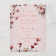 This beautiful wedding invitation showcases an elegant floral design featuring a delicate branch adorned with soft pink cherry blossoms. The light blush tones of the flowers and the gracefully curved dark branches exude romance and timeless beauty, making it the perfect choice for couples looking to celebrate their love in style.