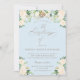 Elegant Floral Blue Beige Calligraphy Baptism Invitation