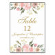 An elegant spring floral bouquet of blush pink peonies and ivory roses frame the top and bottom of this lovely spring wedding table number card. The sprigs of sage leaves decorate in the midst of the peach array of flowers that surround the beautiful antique gold typography.