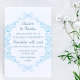 Elegant Floral & Bow Illustration Blue Wedding Invitation