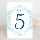 Elegant Floral & Bow Illustration Blue Wedding Table Number