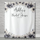 This elegant bridal shower photo backdrop is designed to make a statement. Featuring the bride's name in script typography along with "Bridal Shower" prominently displayed, it’s perfect for celebrating the special occasion. The date is written in a simple font just below, adding a personal touch. Adorned with black, gray, and cream-colored flowers around the top and bottom, the backdrop offers a chic and classic look that blends seamlessly with any bridal theme. The text can be fully customized to include the bride's name and date, and the background color can be adjusted to fit your event's color scheme. Not only ideal as a photo booth background, but it can also be used behind a buffet or mimosa bar, the gift table, or as a backdrop while the bride opens her presents. This versatile backdrop adds a stylish and sophisticated element to your bridal shower decor, making it a memorable part of the celebration. Elegant Floral Bridal Shower Photo Backdrop For A Photo Booth Or Party Decoration Black And White