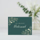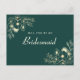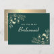 Ask your best friends to stand by your side with this vintage bohemian chic bridal proposal card. Featuring luxurious emerald green tones, gilded gold floral accents, and custom text on the back, this elegant design offers a personal and timeless way to pop the question: 'Will you be my bridesmaid?