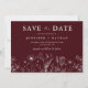 Announce your upcoming celebration in timeless style with this Elegant Floral Burgundy Save the Date Card. Featuring deep burgundy florals, and refined modern typography, this design sets the perfect tone for a romantic wedding. Add names, and event details to fully personalize your card. Printed on premium cardstock, it pairs beautifully with the matching invitation suite.
