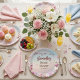 Celebrate the bride-to-be with these charming personalized paper plates, perfect for adding a touch of whimsy and elegance to any bridal shower. Featuring a soft pastel gradient background adorned with delicate pink magnolia blossoms and fluttering butterflies, the design centers around the heartfelt message "Showering love and joy" in graceful script, followed by the customizable "Samantha's Bridal Shower" and the date of event.