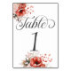 Featuring customizable table numbers and adorned with delicate bouquets of red and blush pink flowers, these cards beautifully blend practicality with timeless charm.