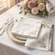 Celebre su unión especial con estas elegantes servilletas de boda florales, que presentan un delicado diseño de cruz y rosas. La frase 'La Boda De' anuncia con elegancia el enlace, con espacio para añadir los nombres de la pareja y los detalles del evento. Perfectas para añadir un toque de romance clásico a las mesas de su recepción, estas servilletas serán un detalle hermoso y memorable para sus invitados.