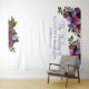 Elegant photo booth custom wedding couple backdrop with beautiful fuchsia pink, and light purple flowers with foliage and leaves. Easy to personalize with your event's title, name, and date.