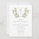 Elegant Floral Crest Green Monogram Wedding Invitation