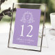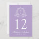Add gentle charm to your wedding reception with these lavender floral crest table number cards, showcasing the couple’s initials within a delicate white crest. The center highlights the table number, while the names and wedding date appear below in elegant white script—ideal for lavender weddings, romantic ceremonies, or spring weddings. This card measures 5"x7". Edit each table number individually and add them to your cart to ensure a smooth ordering process.