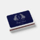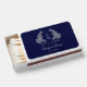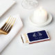 This design features navy blue heritage crest, delicate monogram initials, elegant script typography, a subtle luxury linen texture, with a detailed botanical leaf engraving pattern in silver color. Perfect for classic, royal-themed, old-money, and formal black-tie weddings. This product can be easily personalized. If you need help with the customization of the product or need matching products kindly please contact me via Zazzle.