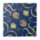 Elegant Floral Damask Navy Blue & Gold Sunflower Ceramic Tile