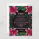 This stunning floral border design features vibrant, symmetrical pink and purple flowers with lush green foliage, creating an elegant and eye-catching frame. The deep black background provides a perfect contrast to the vibrant colors, making it ideal for wedding invitations, save-the-date cards, or other wedding-themed stationery. The luxurious floral artwork is perfect for a romantic and modern wedding esthetic. Add a personal message or details in the center to make it truly unique for your special day.