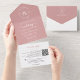 Elegant Floral Dusty Pink Monogram QR Code Wedding All In One Invitation