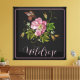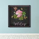 Elegant Floral Embroidery Pattern Black Background Canvas Print