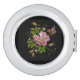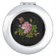 Elegant Floral Embroidery Pattern Black Background Compact Mirror