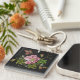 Elegant Floral Embroidery Pattern Black Background Keychain