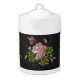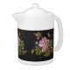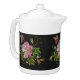 Elegant Floral Embroidery Pattern Black Background Teapot