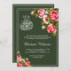Elegant Floral Forest Green Baby Girl Aqiqah Invitation