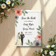 This elegant watercolor floral save the date invitation is perfect for a modern wedding. The romantic design features a sleek watercolor floral frame with a bride and groom illustration and black calligraphy on a white background.
