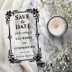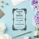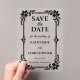 Announce your upcoming celebration with this elegant Save the Date card. The botanical illustration beautifully frames your details, for a elegant and sophisticated presentation. Rendered entirely in shimmering black on clear acrylic stock, the design offers a luxurious aesthetic that feels both romantic and timeless.
