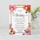 Elegant floral memorial or funeral service invitation featuring a painting of flowers and berries on a white background.