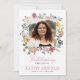 This beautiful funeral order of service program features a classic white background, a single square photo surrounded by wildflowers, and simple yet elegant typography. The script on the front says "Celebration of Life". The backside has all the program details.