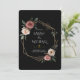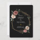 A luxurious wedding invitation design featuring a dark textured background with a golden geometric frame and delicate watercolor roses in blush pink, white, and dusty rose. Elegant greenery complements the florals, creating a sophisticated and romantic aesthetic. Perfect for couples looking for a unique and modern wedding card style. Fully customizable to add names, date, and wedding details.