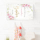 Modern, elegant Baptism Welcome Banner. Design features floral elements in bright pink color, gold glitter sprinkles , ''Baptism'' in gold lettering, gold cross and party details.