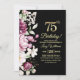 Elegant Floral Gold 75 Birthday Photo Invitation