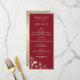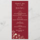 Elegant, boho, modern hand drawn gold floral and red burgundy wedding menu with simple calligraphy script.