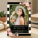 Elegant Floral Gold Black White Stripes Graduation Announcement