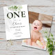 Elegant Floral Greenery 1st Birthday Photo Invitation