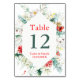 Elegant Floral Greenery Winter Wedding Table Number