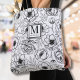 Add a touch of elegance to your daily routine with this stylish tote bag, featuring a personalized monogram and name framed within a chic square detail. The bag showcases a beautiful botanical floral pattern reminiscent of upscale French perfume or high-end fashion brands, bringing a sense of nature and spring into your everyday carry. The sophisticated mix of bold serif font and delicate script typography gives the tote a timeless and stylish look, making it perfect for any occasion. Whether you're heading to the market, the gym, or just out for a stroll, this versatile bag is both functional and fashionable. It’s an ideal gift for bridesmaids, a bride at her bridal shower, birthdays, Mother's Day, or any special occasion. The customizable design allows you to create a unique accessory that blends boho charm with a classic, art-inspired flair, making it a thoughtful and stylish must-have. Elegant Floral Initial Name Monogram Tote Bag Black White Flower Pattern Personalized Gifts For Her.
