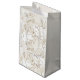 Ivory floral personalized small paper bag. Elegant branding design with golden khaki flowers on ivory abstract background for your small business. Edit text with easy to use Zazzle editing tool! Add the name and business. Visit the shop to see all the collection. There are planner, notebook, note pad, binder, pen, clipboard and so much more available. And of course, sanitisers and masks are also in the shop!