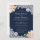 Elegant Floral Lace Navy Peach Wedding Invitation