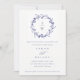 Elegant Floral Laurel Wreath Navy Blue Wedding Invitation