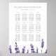 Vertical wedding table seating chart. A classic and elegant lavender watercolor design, perfect for a floral spring country wedding.