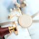 Before the wax hardens, gently and evenly press the wax seal stamp into the melted wax, ensuring it's centered.