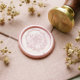Before the wax hardens, gently and evenly press the wax seal stamp into the melted wax, ensuring it's centered.