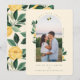 Our lemon chiffon wedding save the date photo card design captures sophistication & elegance with our original hand-painted watercolor lemon tree with yellow blossoms, flowers, and leafy foliage. Crisp citrus yellow shades are paired with deep jade greens to create this fresh wedding design. An elegant arch photo frame to add your special photo. All of the florals and artwork are meticulously hand-painted by us, to create our unique memorable wedding designs. Personalize the text, font, and background colors to suit your design preferences.