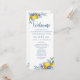 An elegant lemon floral wedding program. Coordinates with the lemon floral main squeeze wedding collection. This customizable Ceremony Program features yellow and blue watercolor foliage. To make advanced changes, go to "Click to customize further" option under Personalize this template. Designed for you by blackberry Boulevard.
