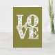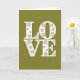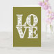 This design shows the word “LOVE” in big white capital letters, arranged on two lines with “LO” above “VE.” Each letter is filled with tiny cut-out flower shapes that look like daisies or starbursts, plus small round dots scattered between them. The white letters stand out strongly against a deep olive green background, giving the card a calm, cozy feel. The flowers and dots add a gentle, lace-like look that makes the message feel thoughtful and cared for. There aren’t any other characters or objects, so your eyes go straight to the word and its details. The “LOVE” text sits centered on the front, and the letters look like simple, printed capitals rather than cursive. It’s a sweet choice for a partner or a close friend because it says a lot without needing many words 🥰❤️. Hope it helps you share your Valentine’s Day feelings with someone special.