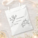 Elegant wedding favor bag featuring Love Is Sweet script and a touch of whimsy blooms with wisps of wildflower. Adopt this stylish floral design for your wedding suite. Easy to mix and match with our similar stationery available in various colors. Customizable text, colors, and backgrounds. , peeking over the of your wedding favor gift tags. A note of thanks envelops the cards in your characteristic warmth, appearing on the front and back.