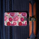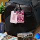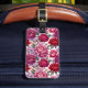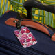 Red Roses, pink peonies, and purple lilacs on a white background create a beautiful luggage tag with a vintage look. The bright colors and bold print ensure that this tag will be easy to spot at the airport! The back is solid pink, with space for your name and address.