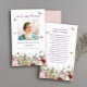 This is a whimsical and elegant memorial prayer card. The design features a beautiful calligraphy font and lovely flowers in pink and purple and also features delicate fluttering butterflies. This funeral prayer card can easily be personalized with your own photo to create a special tribute for your loved one using the template provided. Please contact the designer for any queries regarding this design or for any matching products.