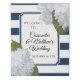 "Elegant Floral Modern Navy White Welcome Wedding Sign." Wide navy blue and white striped background with narrow silver bands are paired with white, hand painted hydrangea flower blossoms for a beautiful and sophisticated wedding decor. The artwork was painted by Audrey Jeanne Roberts, an internationally licensed artist and designer, copyright.