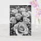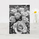 Designed with a monochrome bouquet of fully opened roses, the card centers on one large bloom in the lower foreground where the petals curl outward like a gentle embrace ❤️. Soft grays and deep charcoal shadows shape each velvety fold, giving the flowers a quiet, intimate look, as if two friends leaned in close to admire them together. A lightly blurred background keeps attention on the crisp petal edges and the spiral centers that draw your eye inward. Scattered among the roses are clusters of small, round blossoms with textured surfaces, adding contrast beside the smooth, silky petals. A short greeting sits near the top in light gray lettering, spaced neatly so it doesn’t crowd the flowers. A smaller line of text appears near the bottom in a darker gray, tucked just above the main rose without covering its details 🌼. Tiny spherical blooms dot the midsection of the arrangement, hovering between the roses like soft beads in the shadows.